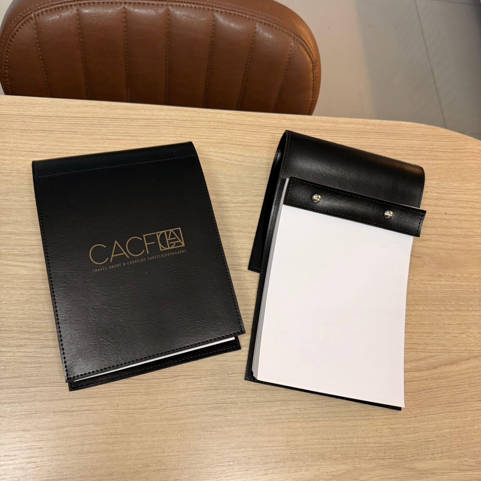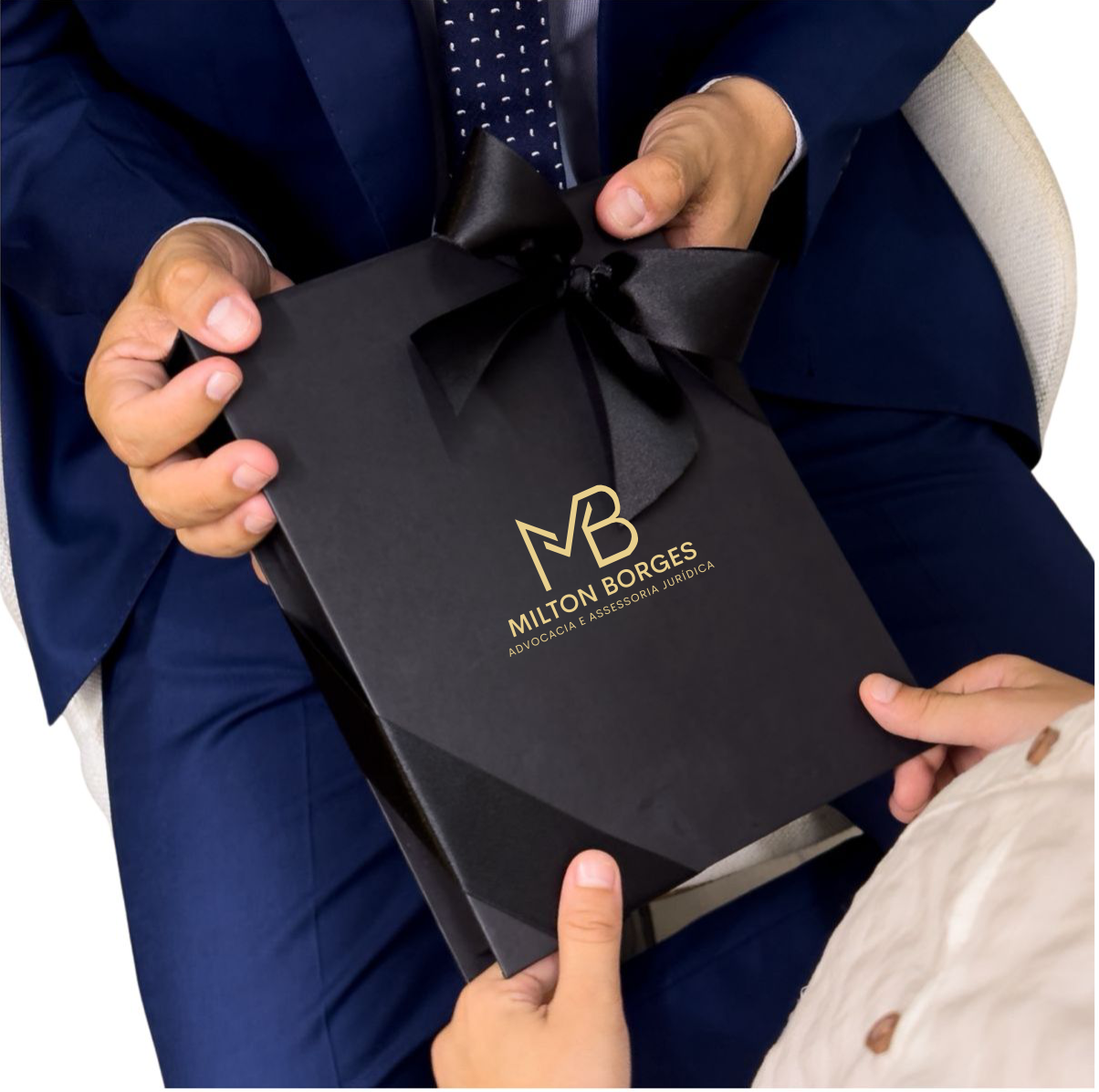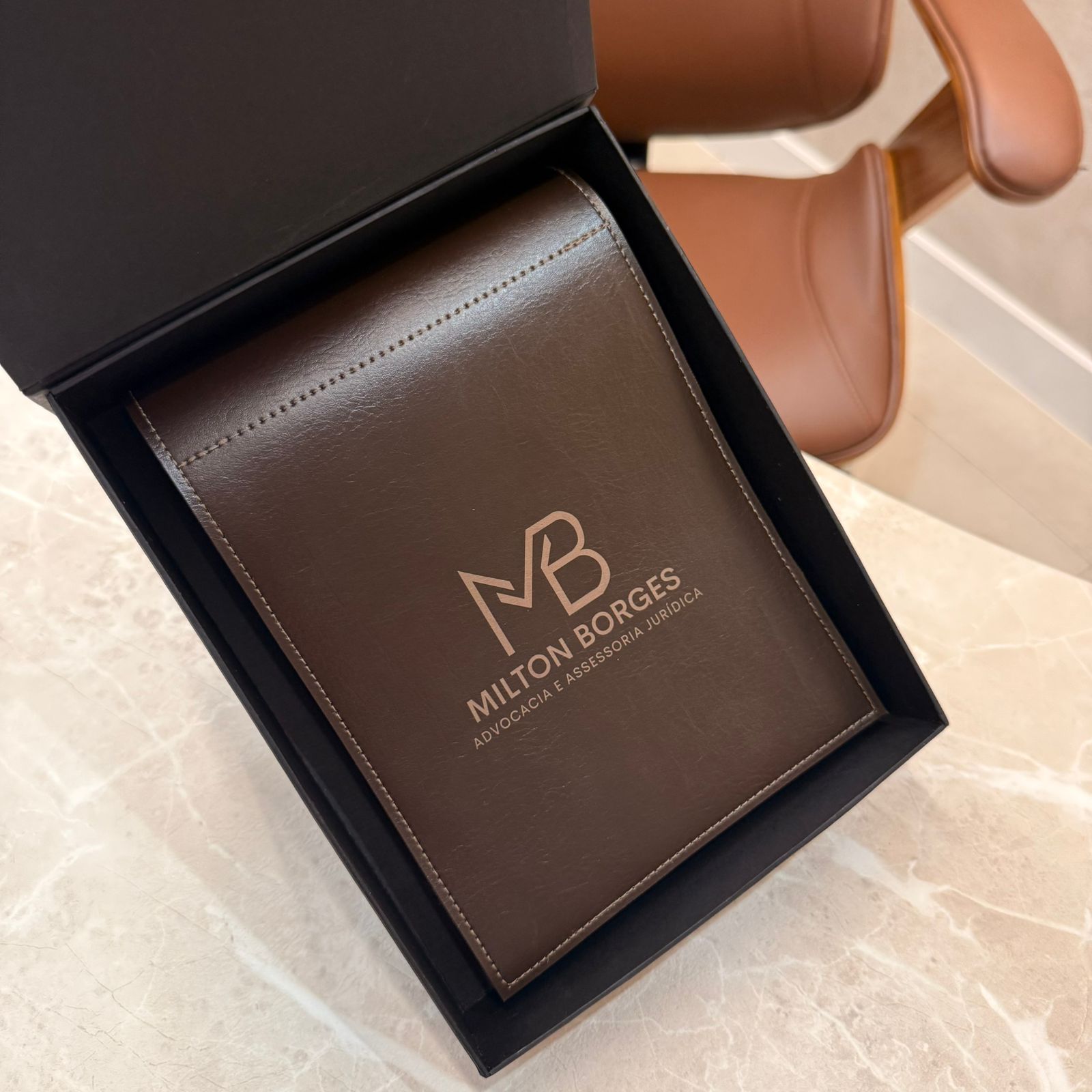 Caso opte por Caixa Cartonada, o padrão de cor da caixa é Preta e será personalizada da mesma forma que o bloco.