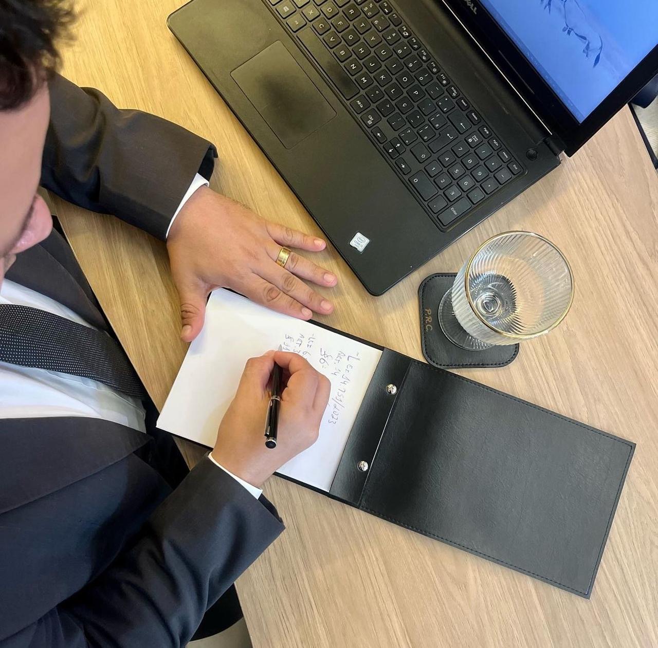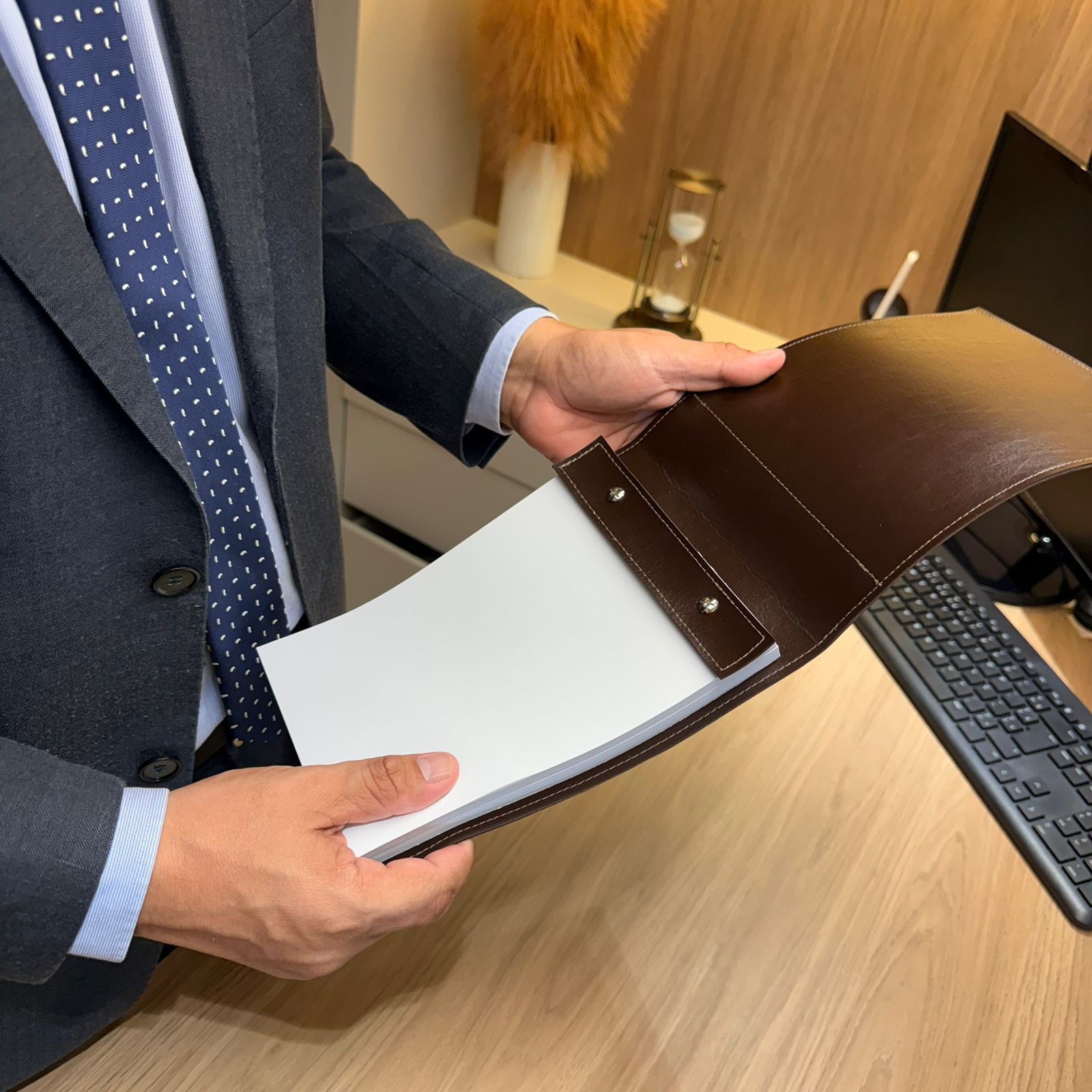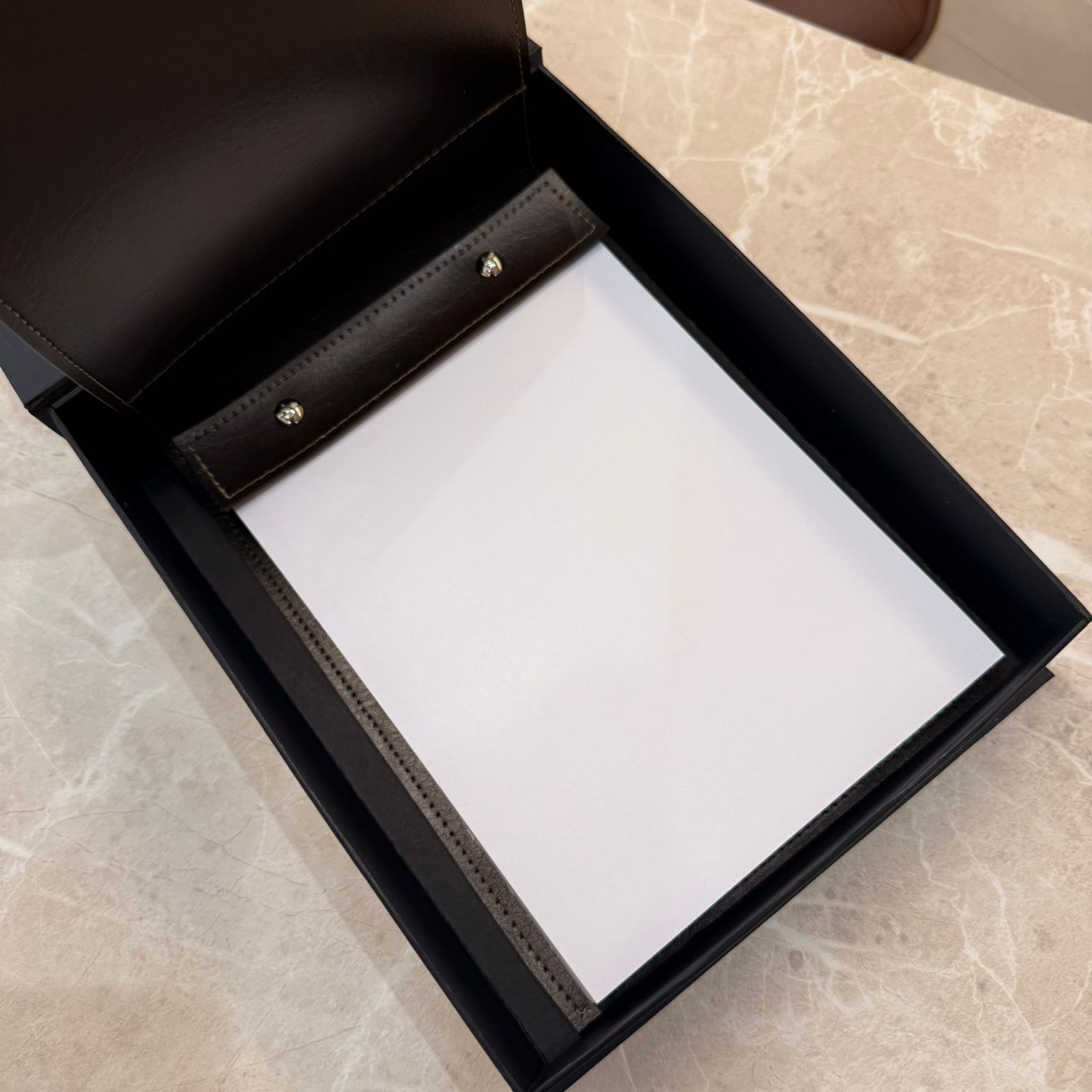 Caso opte por Caixa Cartonada, o padrão de cor da caixa é Preta e será personalizada da mesma forma que o bloco.