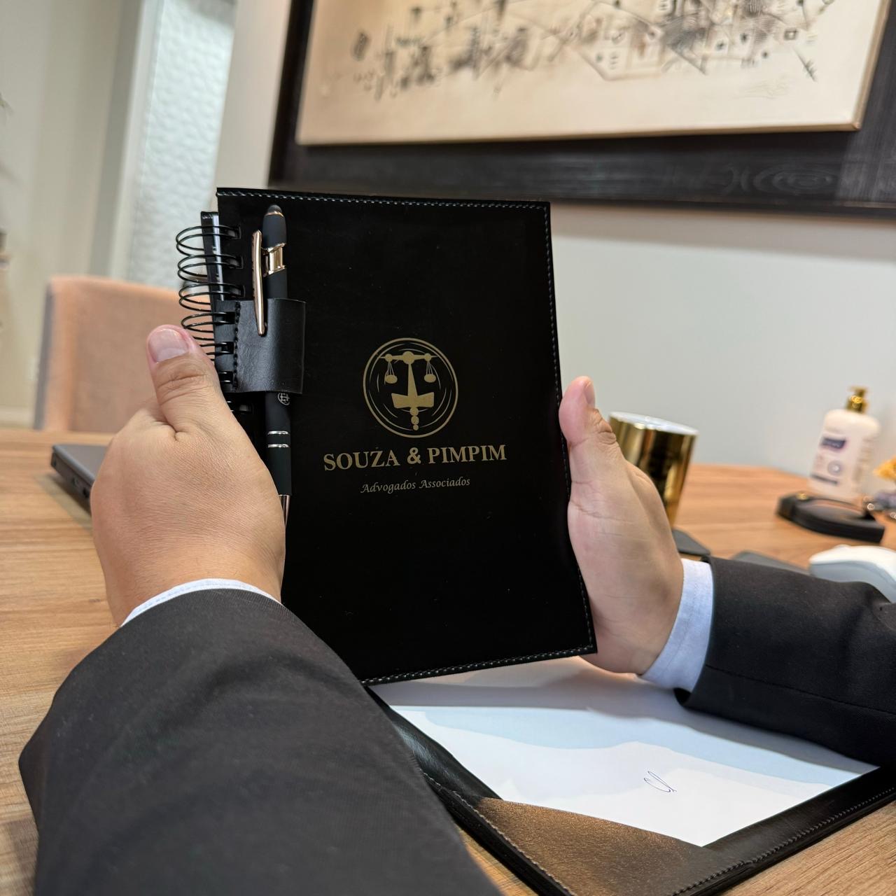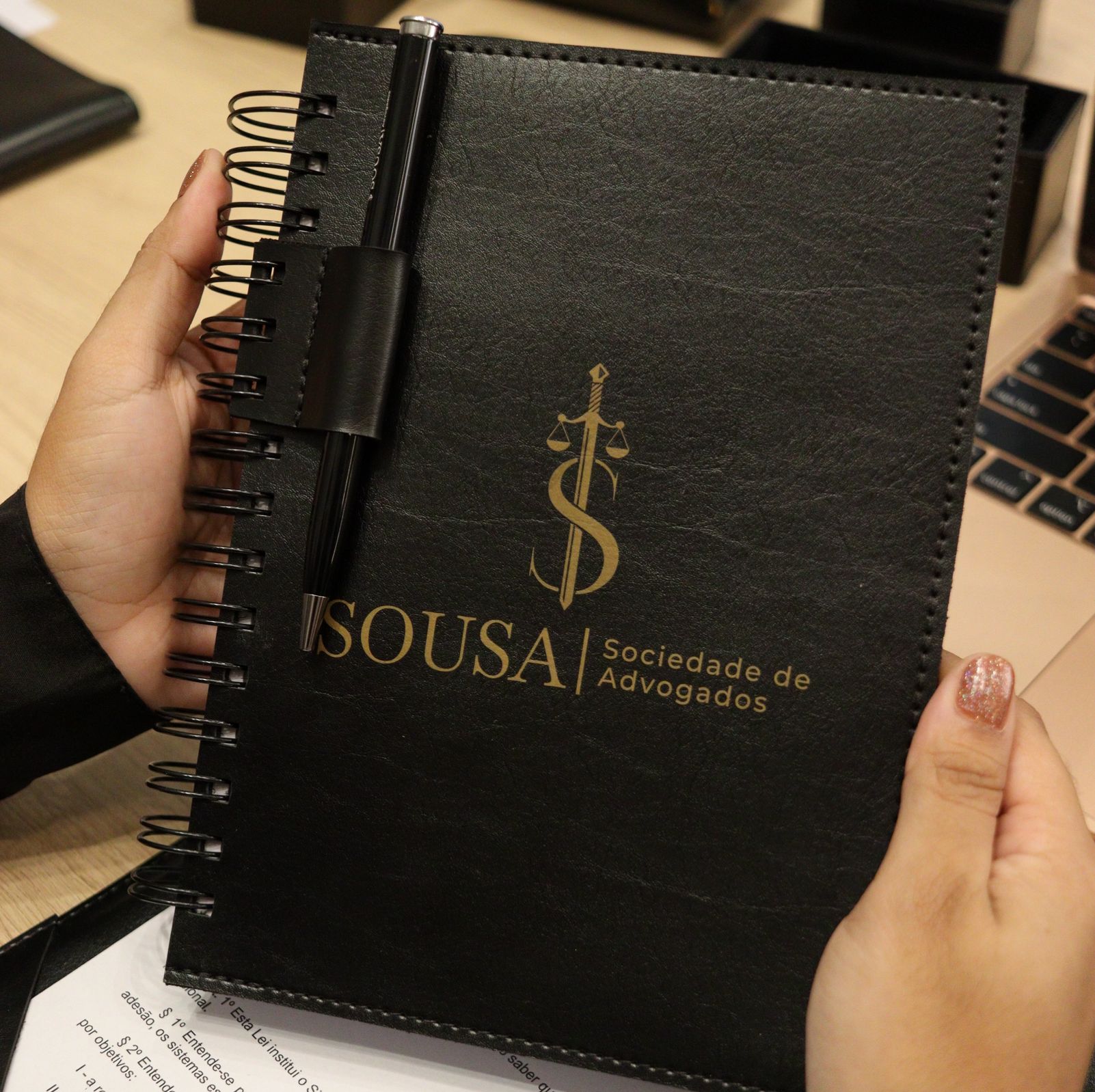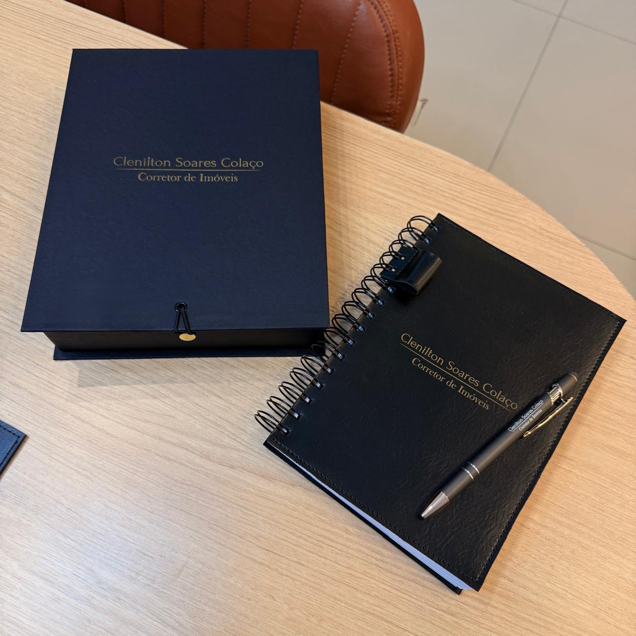 Caderno com Caneta - 15x21cm - 100 folhas pautadas com local para acrescentar data.